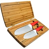 Bamboo gift box containing 1 x 7" Rachael Ray 'Gusto Grip' East/West knife and 1 x 5" Rachael Ray 'Gusto Grip' East/West knife. A cross between a cooks knife and a vegetable chopper the Furi Rachael Ray 'Gusto Grip' East/West knives have very thin blades with an exceptionally sharp cutting edge that slices through vegetables and meats with more ease then the thicker cooks knife. The scalloped edges reduce friction to make slicing easier.